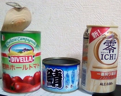 この写真だとわかりづらですが、トマト缶は350mlのノンアルよりわずかに太いです。だいたいこの写真ぐらいの大きさの缶詰を選べばOKです。